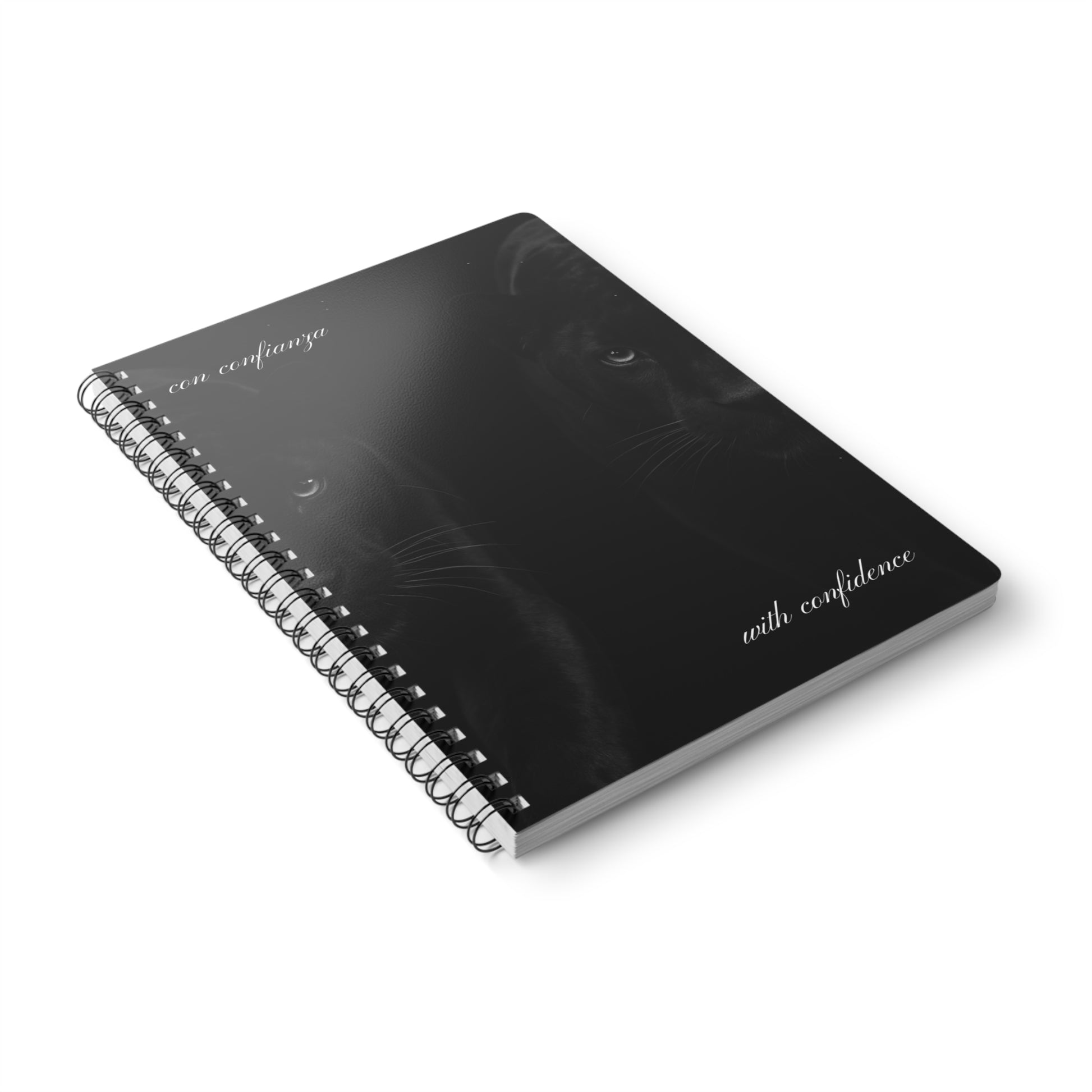 The Con Confianza A5 notebook features an inspirational, simple, and classy panther design. It's made for those whose confidence is magnetic, they know who they are, and success chases them wherever they go. It's designed to be elegant while inspiring to do everything with confidence, whether it be jotting out ideas, journaling, or taking notes. Whatever your goal is, you got this.